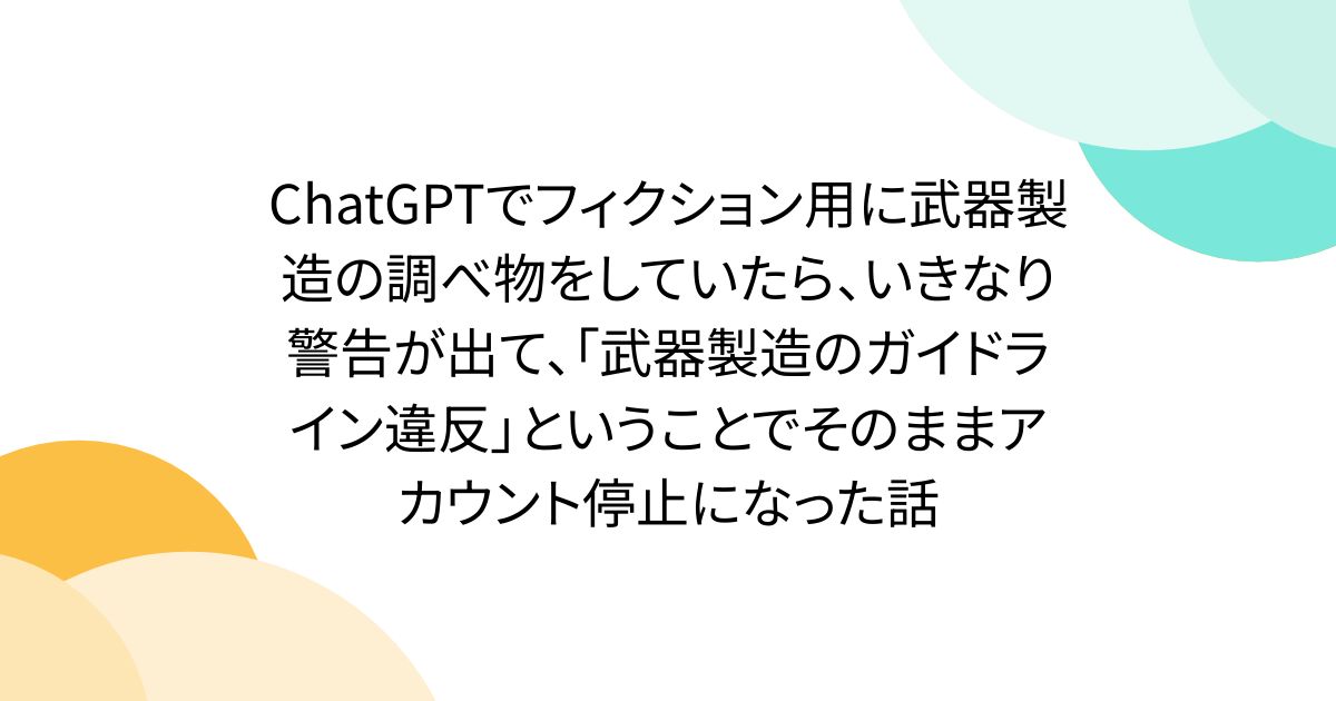 ChatGPTでフィクション用に武器製造の調べ物をしていたら、いきなり警告が出て、「武器製造のガイドライン違反」ということでそのままアカウント停止になった話