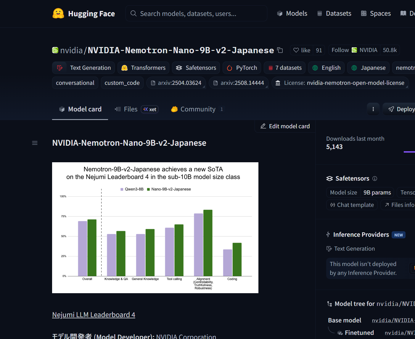 NVIDIAが日本語特化の9Bモデル「NVIDIA Nemotron-Nano-9B-v2-Japanese」を公開