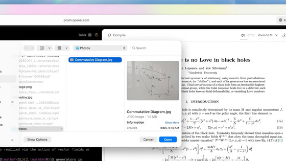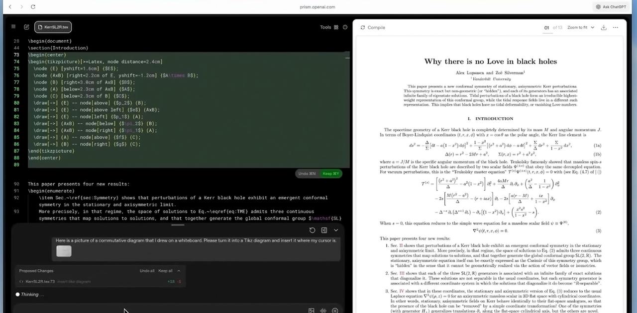OpenAI、ホワイトボードの数式や図をLaTeXの図版に変換。問題の仮説検証、推論、関連文献の検索など、論文執筆を支援してくれる「Prism」公開