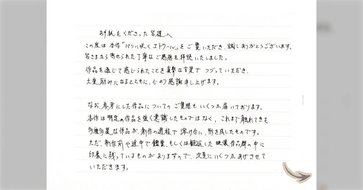 X側の誤検知か 『パリに咲くエトワール』X公式アカウントが投稿した監督の手書きの手紙画像に何故か「AIで生成」の表示