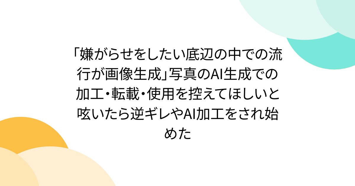 「嫌がらせをしたい底辺の中での流行が画像生成」写真のAI生成での加工・転載・使用を控えてほしいと呟いたら逆ギレやAI加工をされ始めた