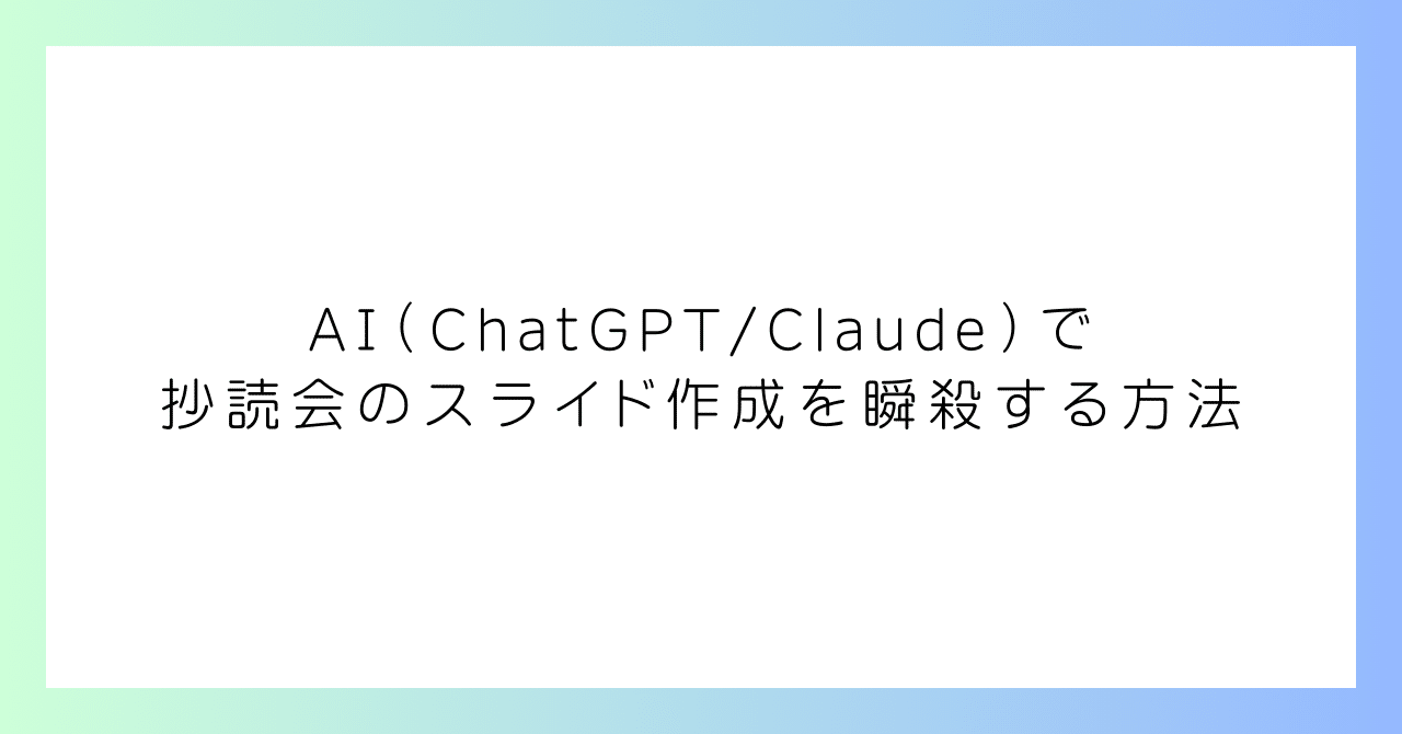 AI(ChatGPT/Claude)で抄読会のスライド作成を瞬殺する方法|genkAIjokyo|ChatGPT/Claudeで論文作成と科研費申請