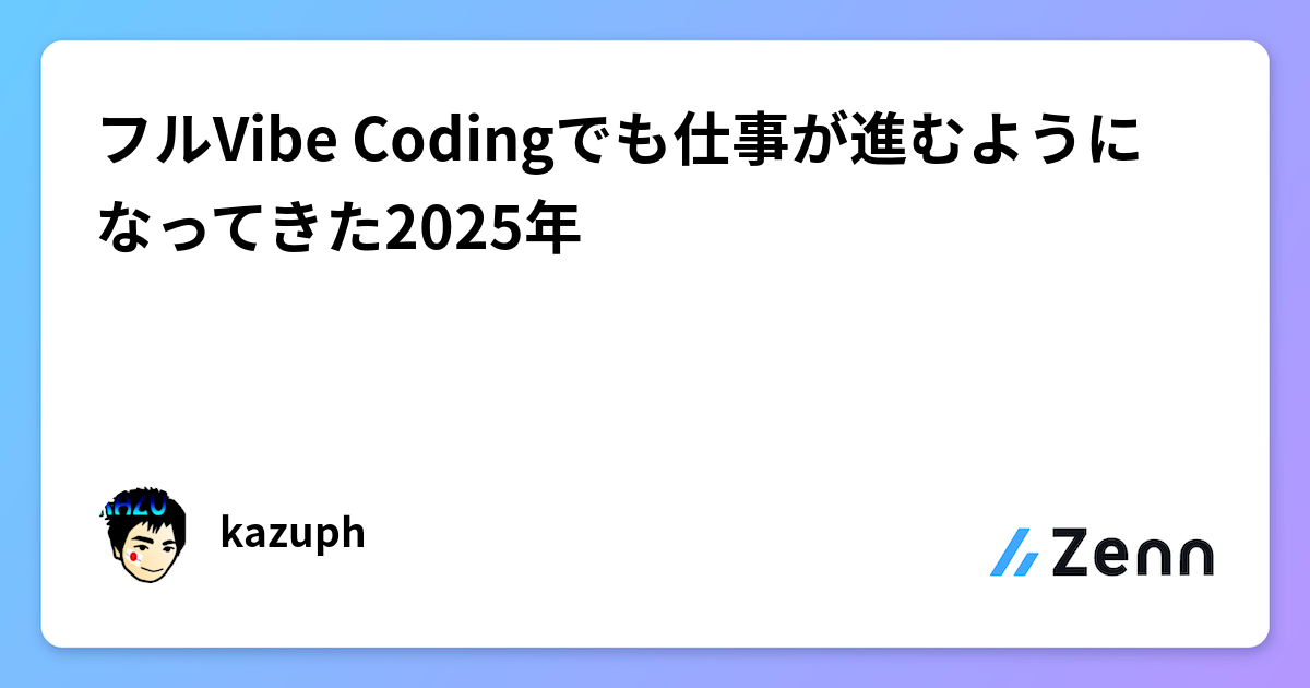 フルVibe Codingでも仕事が進むようになってきた2025年