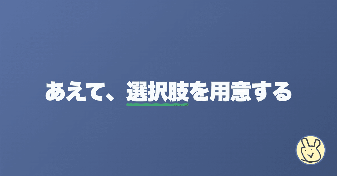 あえて、「このアプローチはAとB、どっちのアプローチにしましょうか」と選択肢を提示することがあります。 僕の中では「この方法しかないよな…」と思っていても、あえて複数案を出して説明することにしています。 今回は知っていると便利なハック的なものを紹介します。 なぜ一択にしないのか 例えば、新しいサービスの技術選定で「TypeScriptを使うか、JavaScriptのままでいくか」という議論があったとする。僕の中では明らかにTypeScriptを選ぶべきだと確信しているのですが 相談されたときは必ず下記の…