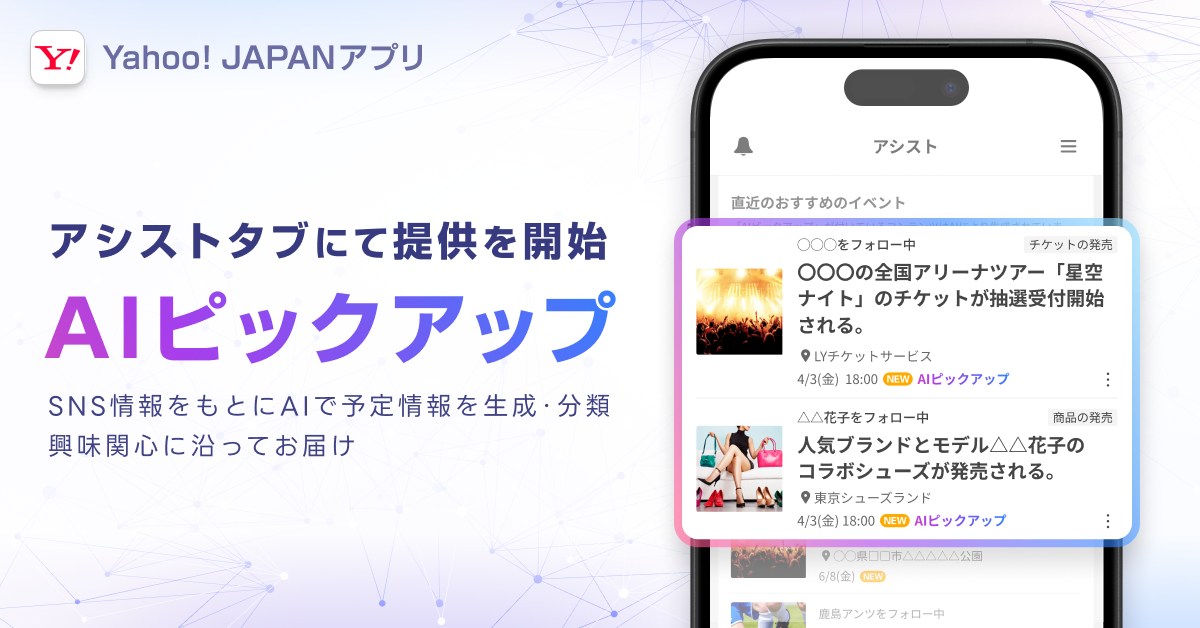 「Yahoo! JAPAN」アプリに「AIピックアップ」登場、Xからイベント情報をお知らせ