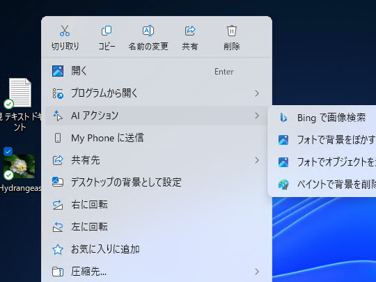 右クリックから直接ファイルにAI処理をかけられるWindows 11の新機能「AI アクション」