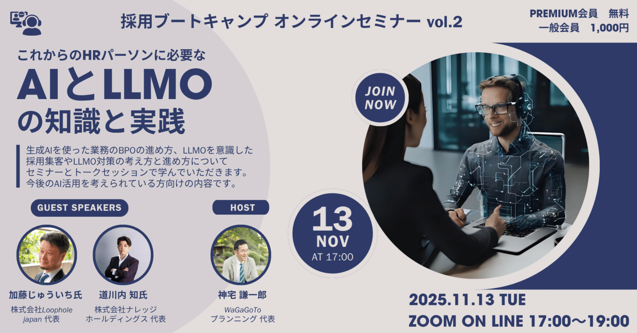 オンラインセミナーレポート「これからのHRパーソンに必要なAIとLLMOの知識と実践」内容のダイジェストを紹介します。|カンヤケケンイチロウ (求人ツッコミニスト、採用自動化のパーソナルトレーナー)