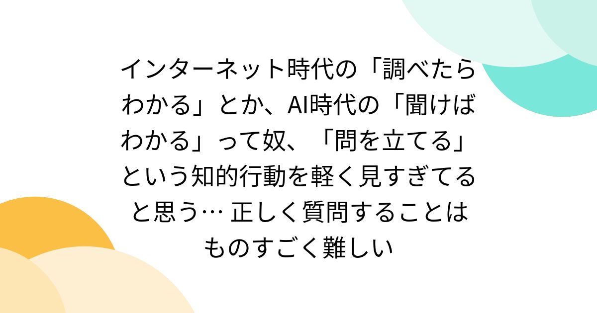 インターネット時代の「調べたらわかる」とか、AI時代の「聞けばわかる」って奴、「問を立てる」という知的行動を軽く見すぎてると思う… 正しく質問することはものすごく難しい