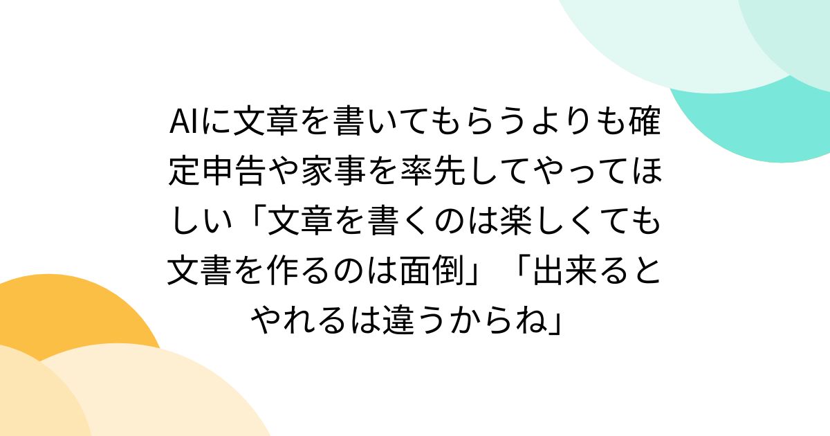 AIに文章を書いてもらうよりも確定申告や家事を率先してやってほしい「文章を書くのは楽しくても文書を作るのは面倒」「出来るとやれるは違うからね」