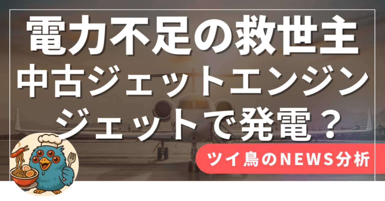 AIの「電力危機」を救うのは「中古ジェットエンジン」だった 中古ジェットエンジン発電という奇策と、データセンター電力危機の深層。|ツイ鳥(ビジネス&投資NEWS解説)おそらく日本で1番「事業の失敗例を載せているnoteアカウント」