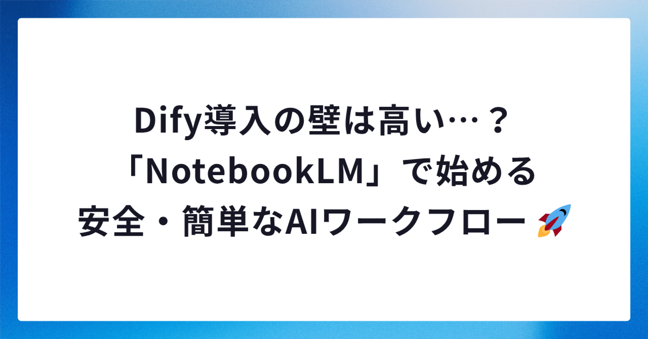Dify導入の壁は高い…? 「NotebookLM」で始める、安全・簡単なAIワークフロー |しんちゃん / AI-Opsマネージャー