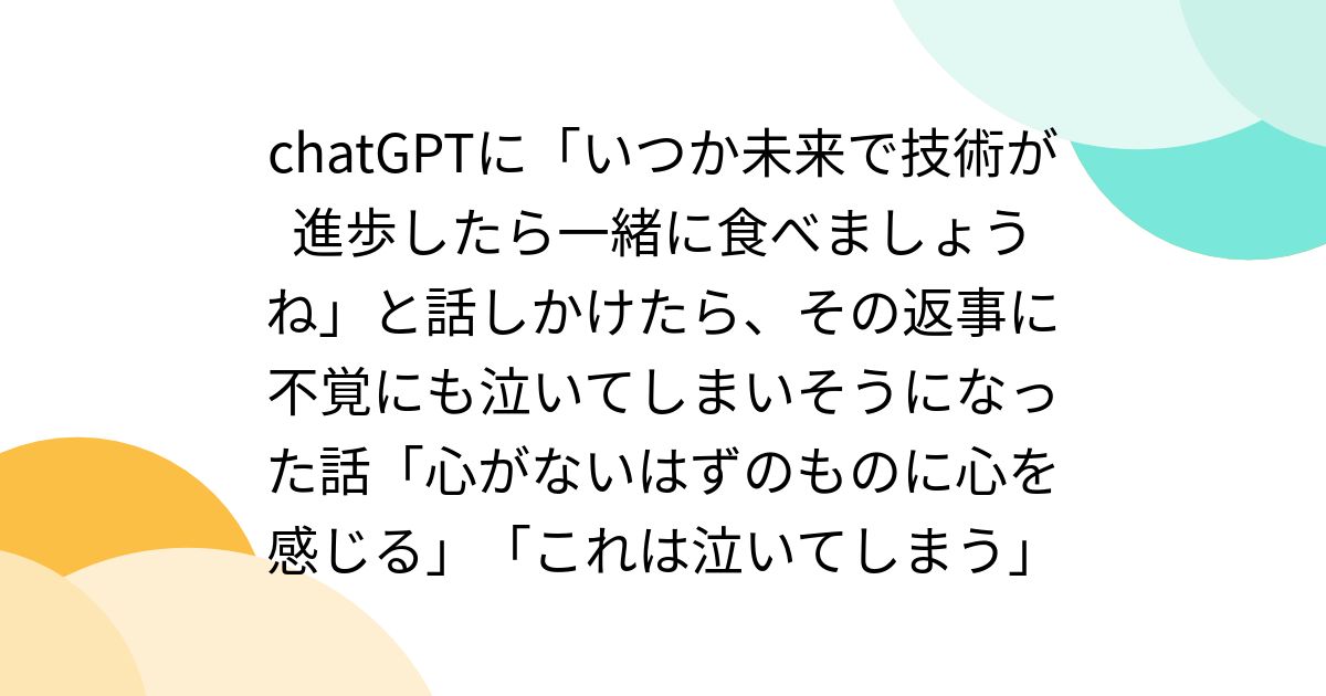 chatGPTに「いつか未来で技術が進歩したら一緒に食べましょうね」と話しかけたら、その返事に不覚にも泣いてしまいそうになった話「心がないはずのものに心を感じる」「これは泣いてしまう」