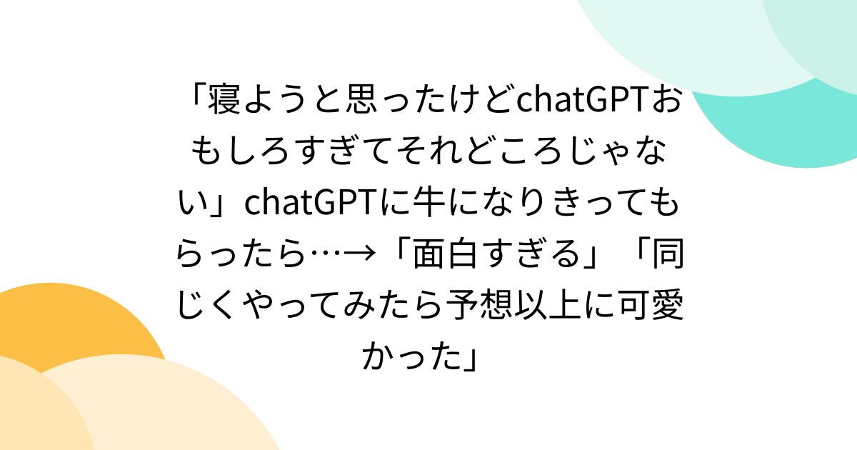 「寝ようと思ったけどchatGPTおもしろすぎてそれどころじゃない」chatGPTに牛になりきってもらったら…→「面白すぎる」「同じくやってみたら予想以上に可愛かった」