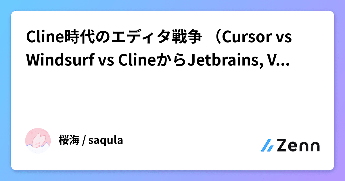 Cline時代のエディタ戦争(Cursor vs Windsurf vs ClineからJetbrains, Vimまで)