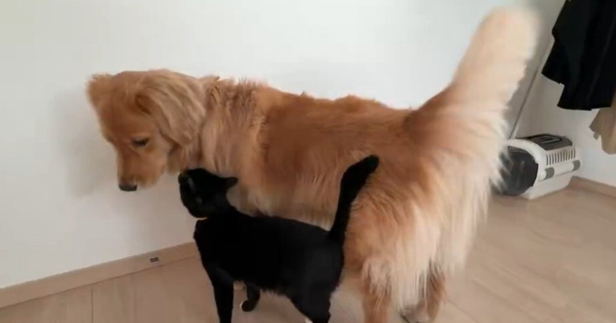 猫がすり寄ると…大型犬の“しっぽブンブン”が高速すぎる⇨「プロペラみたい」「ドラえもんのタケコプター」