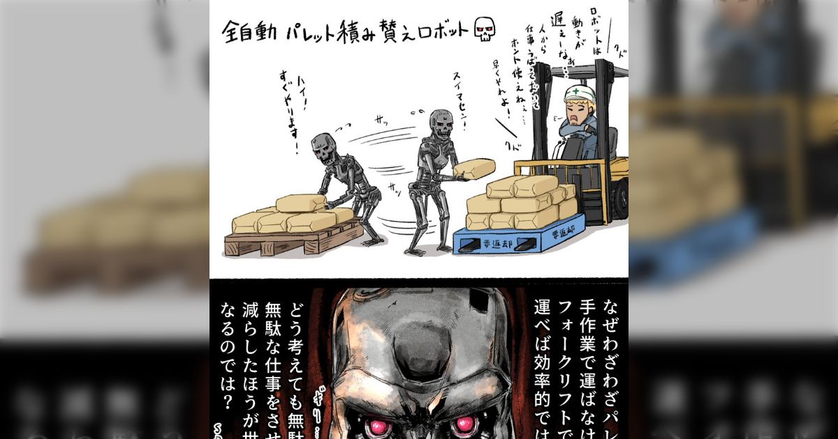 「人工知能ロボットにより全自動化されたパレット積み替え作業」の漫画がロボットがブチギレる話かと思ったらもっと根深い問題があった