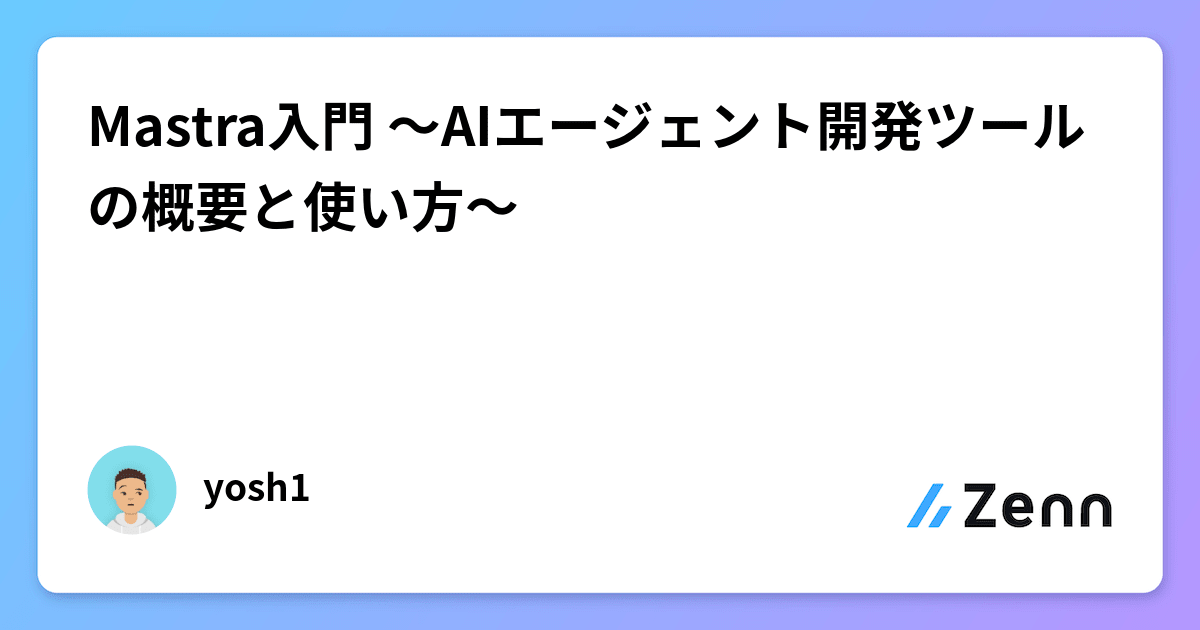 Mastra入門 〜AIエージェント開発ツールの概要と使い方〜