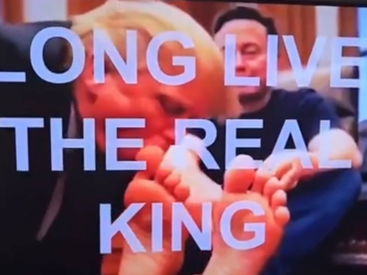 「本物の王に万歳」“トランプ大統領がマスク氏の足を吸う”不快なAI動画が流出!米政府機関のテレビがハッキングされ…