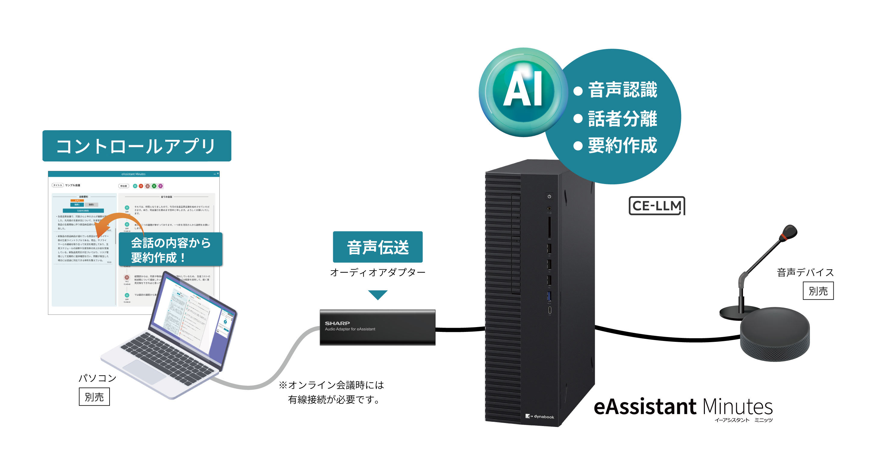 外部ネットに接続しないエッジAI議事録作成ソリューション「eAssistant Minutes」、シャープが発売