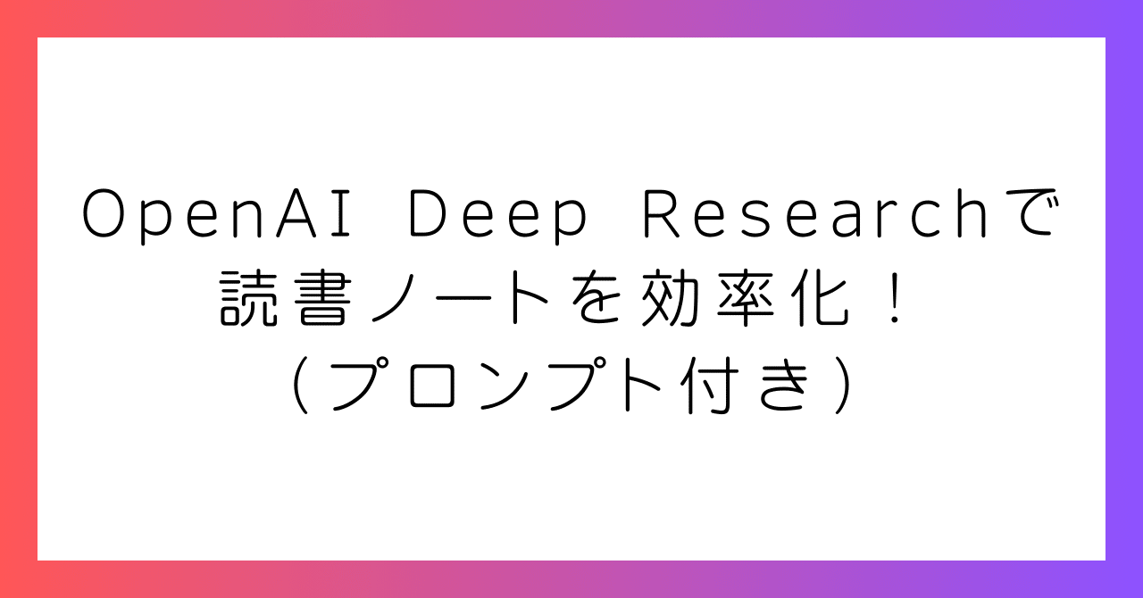 OpenAI Deep Researchで読書ノートを効率化!【プロンプトあり】|genkAIjokyo|ChatGPT/Claudeで論文作成と科研費申請