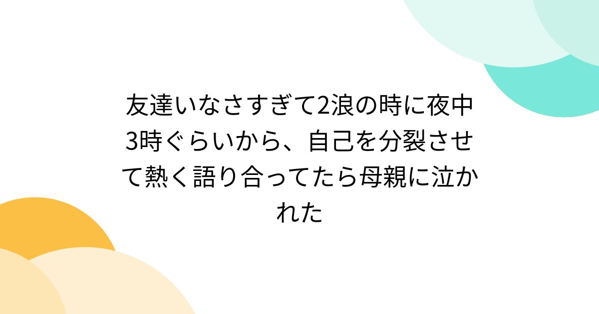 友達いなさすぎて2浪の時に夜中3時ぐらいから、自己を分裂させて熱く語り合ってたら母親に泣かれた