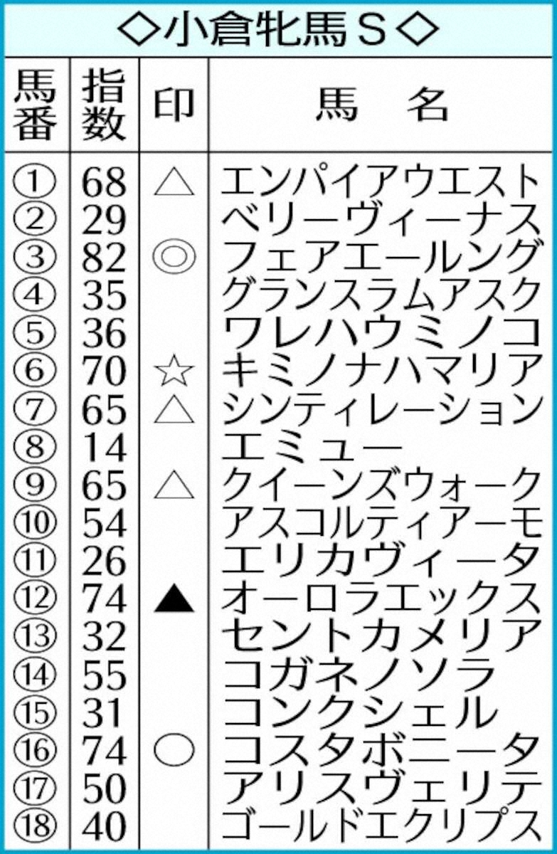 【小倉牝馬S】AI予想 フェアエールング本命!前走内容評価