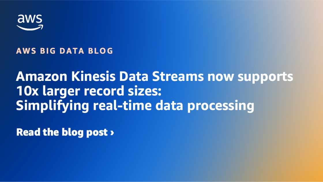 Amazon Kinesis Data Streams で 10 倍大きなレコードサイズをサポート: リアルタイムデータ処理の簡素化