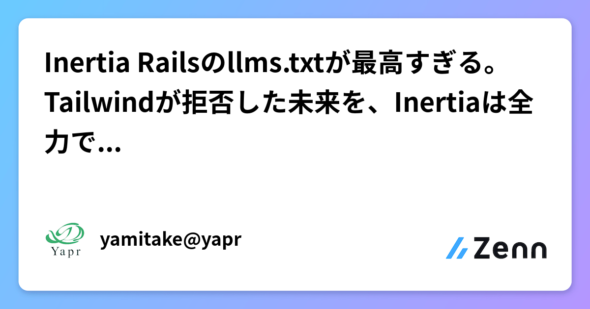 Inertia Railsのllms.txtが最高すぎる。Tailwindが拒否した未来を、Inertiaは全力で迎えにいった