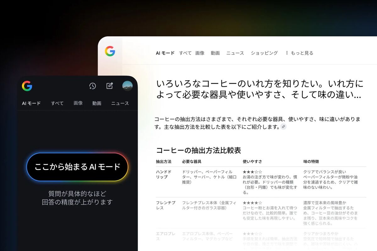 グーグル、「AIモード」を日本語でも提供開始 長い複雑な質問で検索が可能に