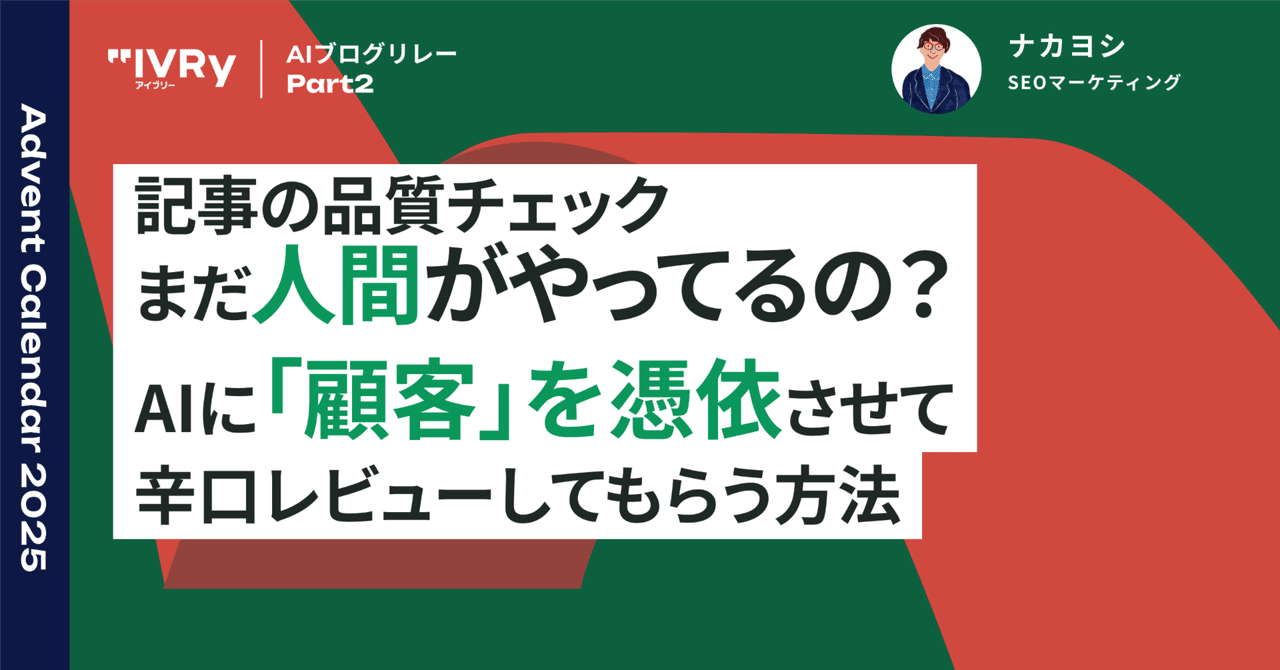 記事の品質チェック、まだ人間がやってるの? AIに「顧客人格」を憑依させて辛口レビューしてもらう方法|ナカヨシ / IVRy