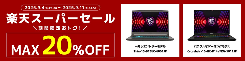 MSIのゲーミングノートPCやモニターが最大20%オフ!楽天スーパーSALE