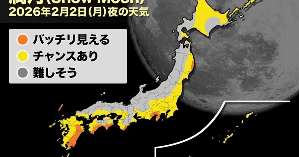 今日2月2日は満月「スノームーン」。気になる天気は?バッチリ観測できる地域も