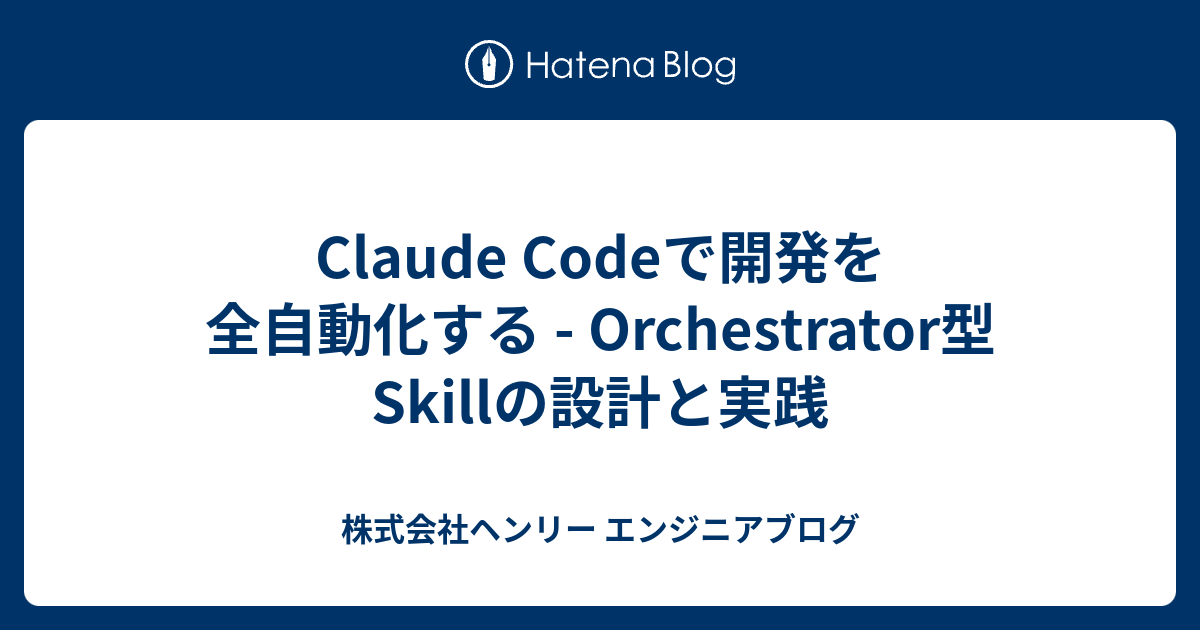 Claude Codeで開発を全自動化する - Orchestrator型Skillの設計と実践 - 株式会社ヘンリー エンジニアブログ