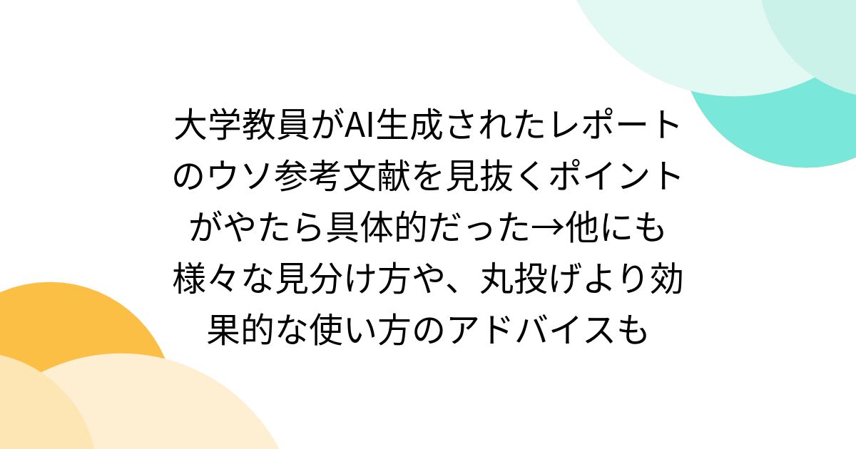 大学教員がAI生成されたレポートのウソ参考文献を見抜くポイントがやたら具体的だった→他にも様々な見分け方や、丸投げより効果的な使い方のアドバイスも