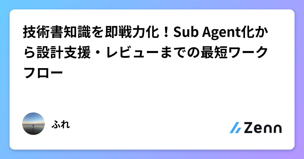 技術書知識を即戦力化!Sub Agent化から設計支援・レビューまでの最短ワークフロー
