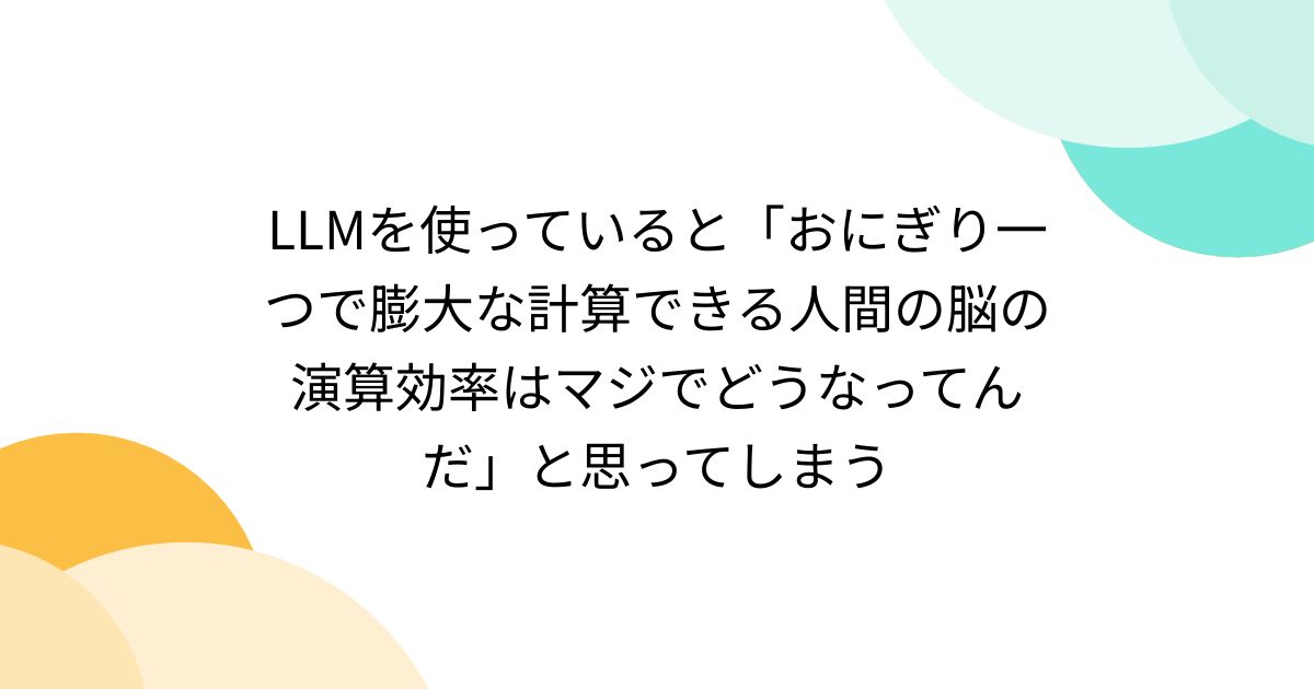 LLMを使っていると「おにぎり一つで膨大な計算できる人間の脳の演算効率はマジでどうなってんだ」と思ってしまう