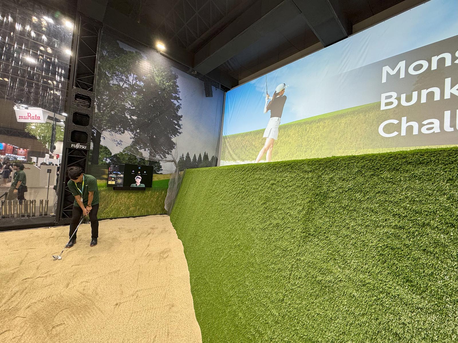 CEATECになぜ巨大バンカー? 富士通ブースで体験できる「AIキャディ」付きバンカーショット【CEATEC 2025】
