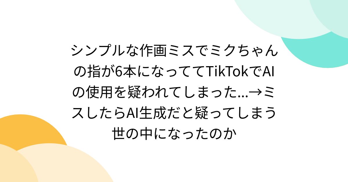 シンプルな作画ミスでミクちゃんの指が6本になっててTikTokでAIの使用を疑われてしまった...→ミスしたらAI生成だと疑ってしまう世の中になったのか