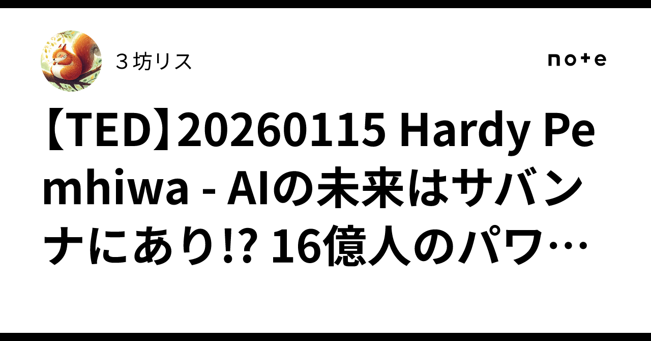 【TED】20260115 Hardy Pemhiwa - AIの未来はサバンナにあり!? 16億人のパワーが世界をFlipする日✨|3坊リス