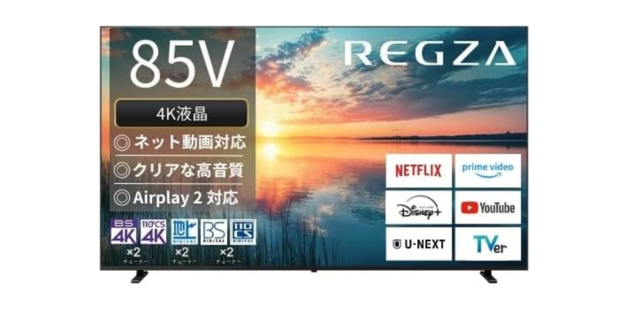 レグザの本気! 省エネ×高精細×スマホ連携可能な85型の4Kテレビが34%オフ #Amazonセール