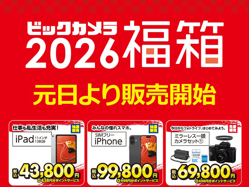 ビックカメラ、1月1日に「2026年福箱」を店頭販売