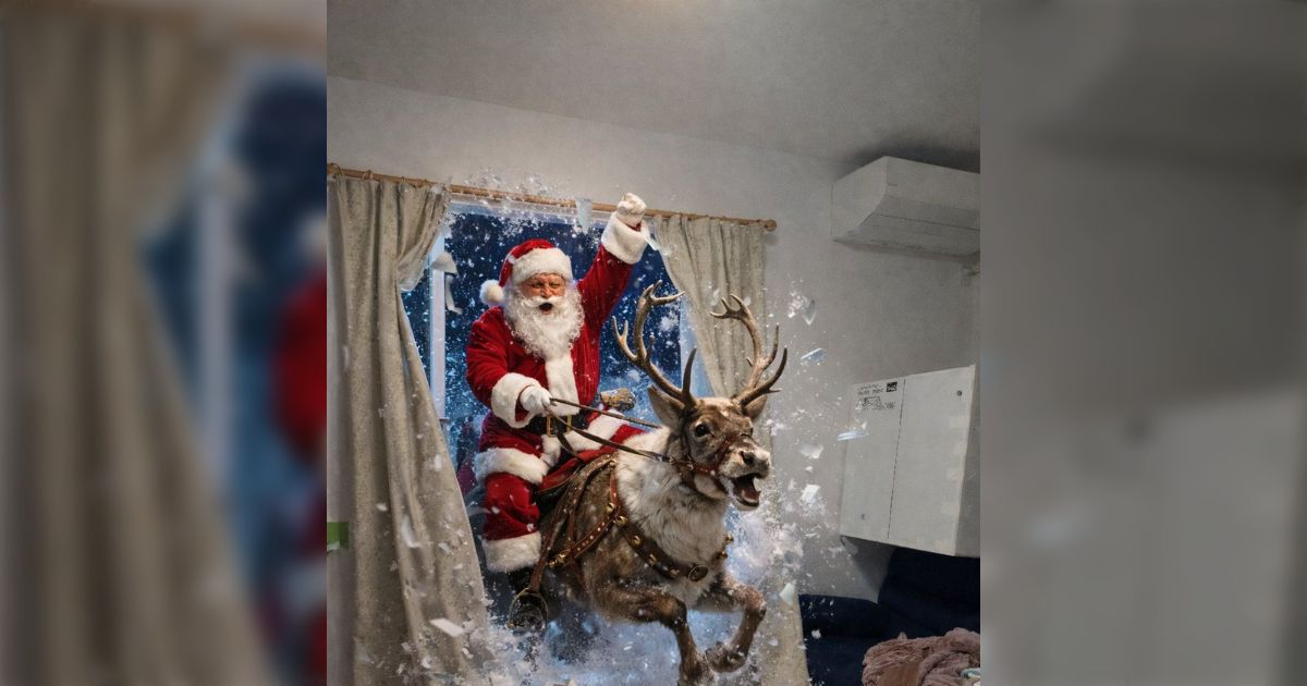 「サンタさん来たよ」と娘に報告するために、AIに証拠画像作ってもらったら、まさかの窓を破壊して登場する過激なサンタの画像を作成