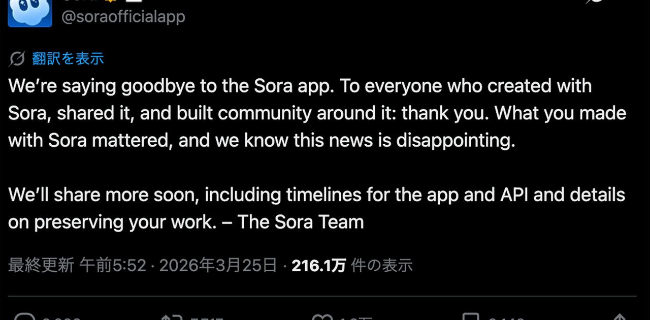 OpenAI、動画生成アプリ「Sora」終了へ 話題になったのになぜ? 理由を聞いた