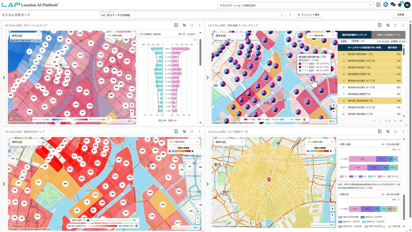 人流データと企業が保有する各種データを重ねて分析・可視化する新機能 クロスロケーションズの人流データ分析プラットフォーム「LAP」