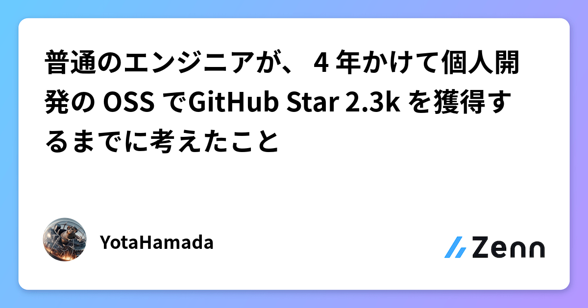 ごく普通のエンジニアが、個人開発のOSSでGitHub Star 2.3kを獲得するまでに考えたこと