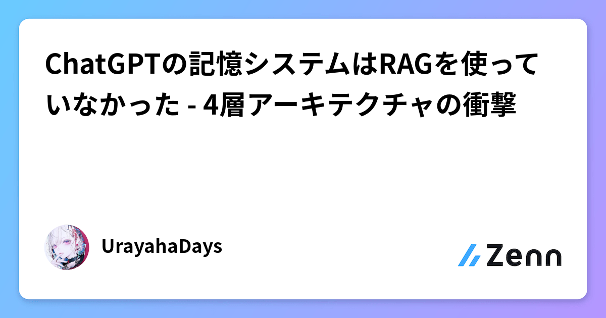ChatGPTの記憶システムはRAGを使っていなかった - 4層アーキテクチャの衝撃