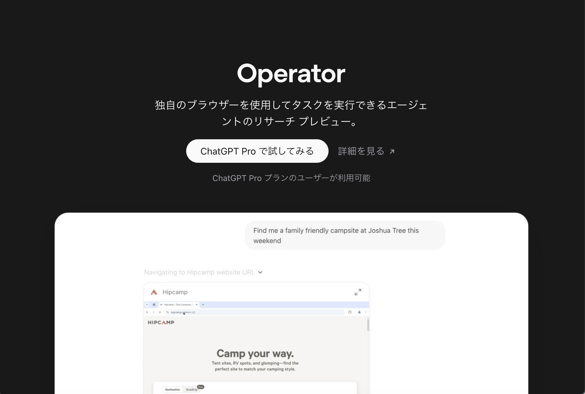 OpenAIのAIエージェント「Operator」が日本でも提供開始/GPT Proユーザー向けに展開、ユーザーに代わってWebブラウザーを操作