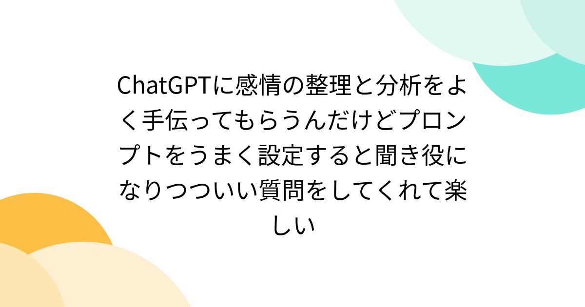 ChatGPTに感情の整理と分析をよく手伝ってもらうんだけどプロンプトをうまく設定すると聞き役になりつついい質問をしてくれて楽しい