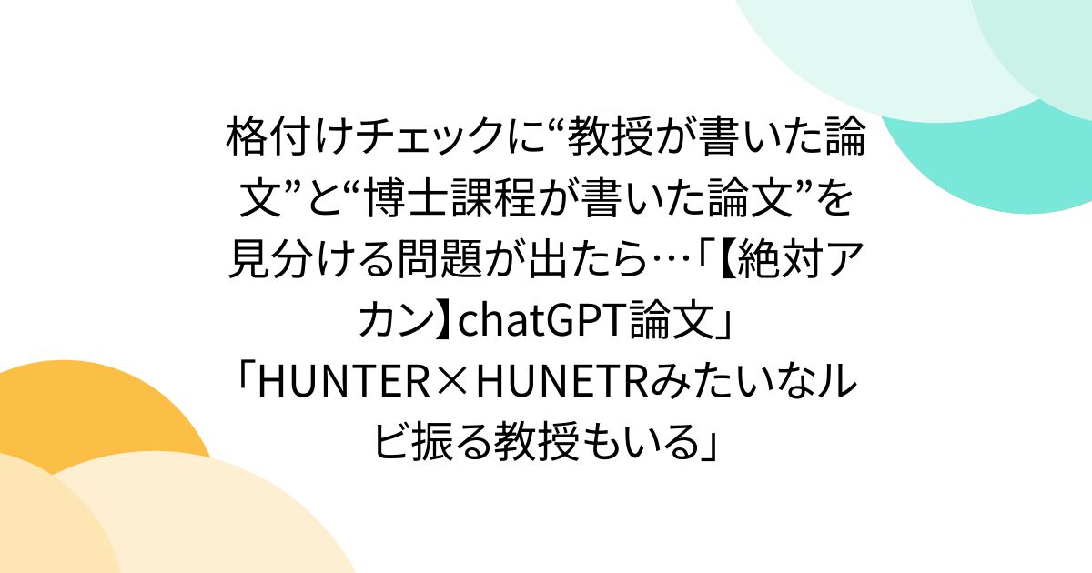 格付けチェックに“教授が書いた論文”と“博士課程が書いた論文”を見分ける問題が出たら…「【絶対アカン】chatGPT論文」「HUNTER×HUNETRみたいなルビ振る教授もいる」