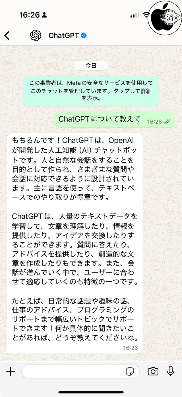 WhatsAppでChatGPTとチャットが可能に